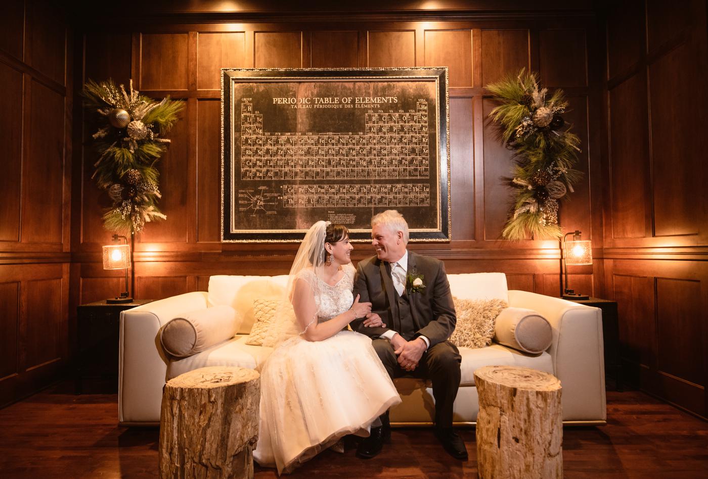 I used a similar technique with the lights from the Christmas trees in the background and then took a super tight close-up photo of Sarah and Steve smiling at each other. Looking at the photo, you’d never guess that there was actually a sea of people all around them. With the lens and the closeness, it makes them look like they’re in a secluded intimate space, not in the chaos of a typical wedding day.