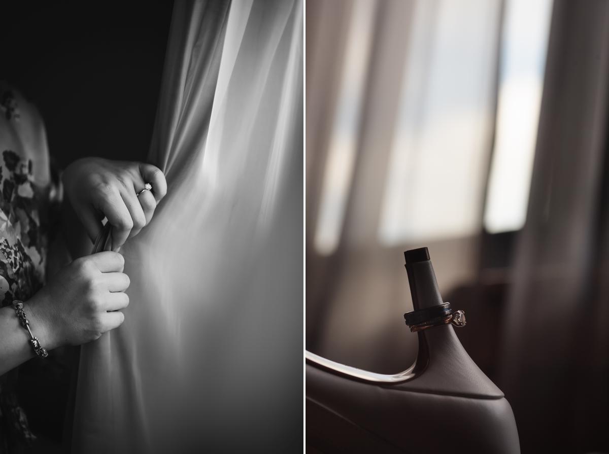 I love playing with the light and shadows in the room and especially getting dramatic photos of brides holding wedding dresses or getting dressed in front of the windows.